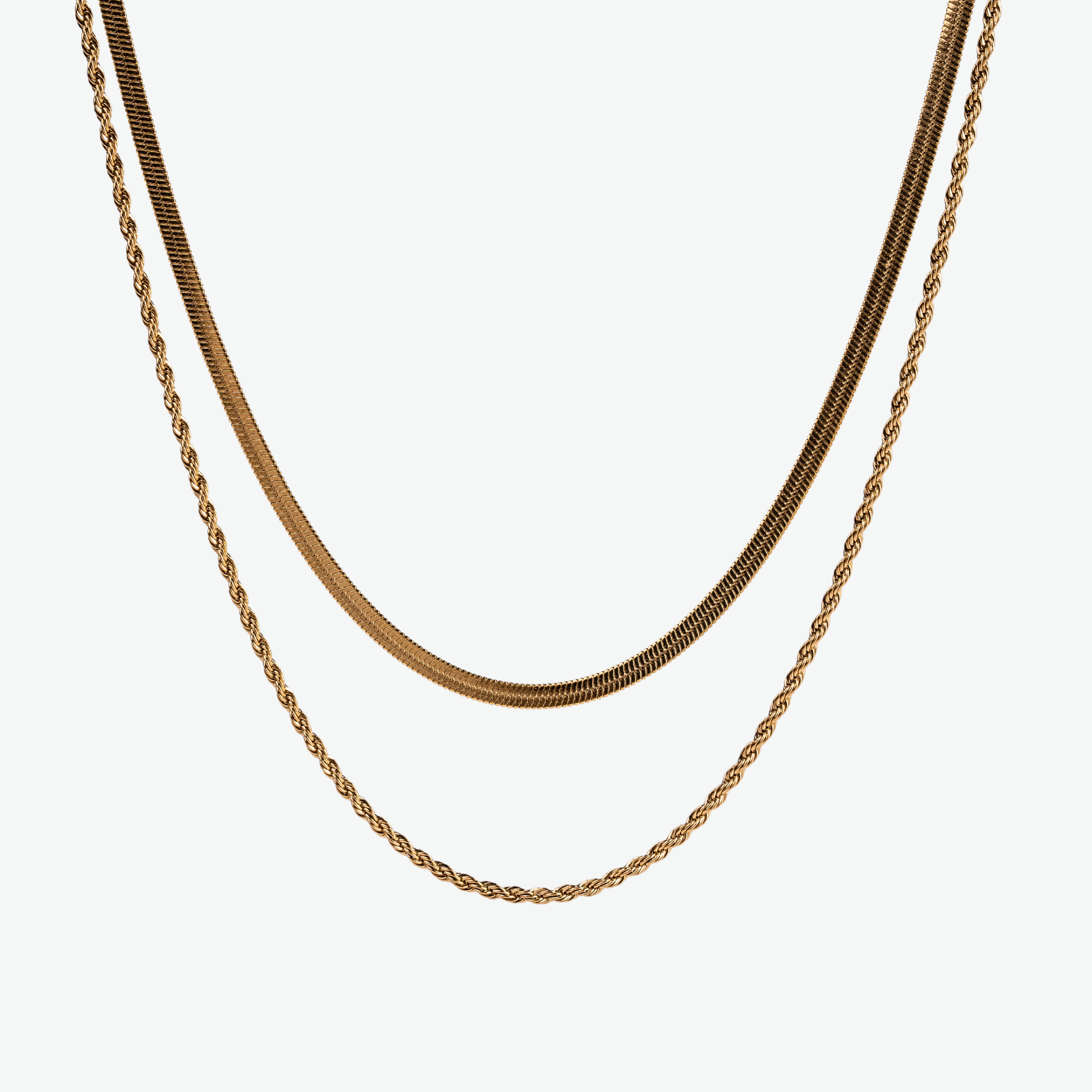 Doble diseño, doble impacto. El Collar Lara Waterproof combina una cadena tipo herringbone con una cadena trenzada, ideal para elevar desde tus looks más casuales hasta los más sofisticados. Llévalo solo o en combinación con otros collares, ¡tú decides!